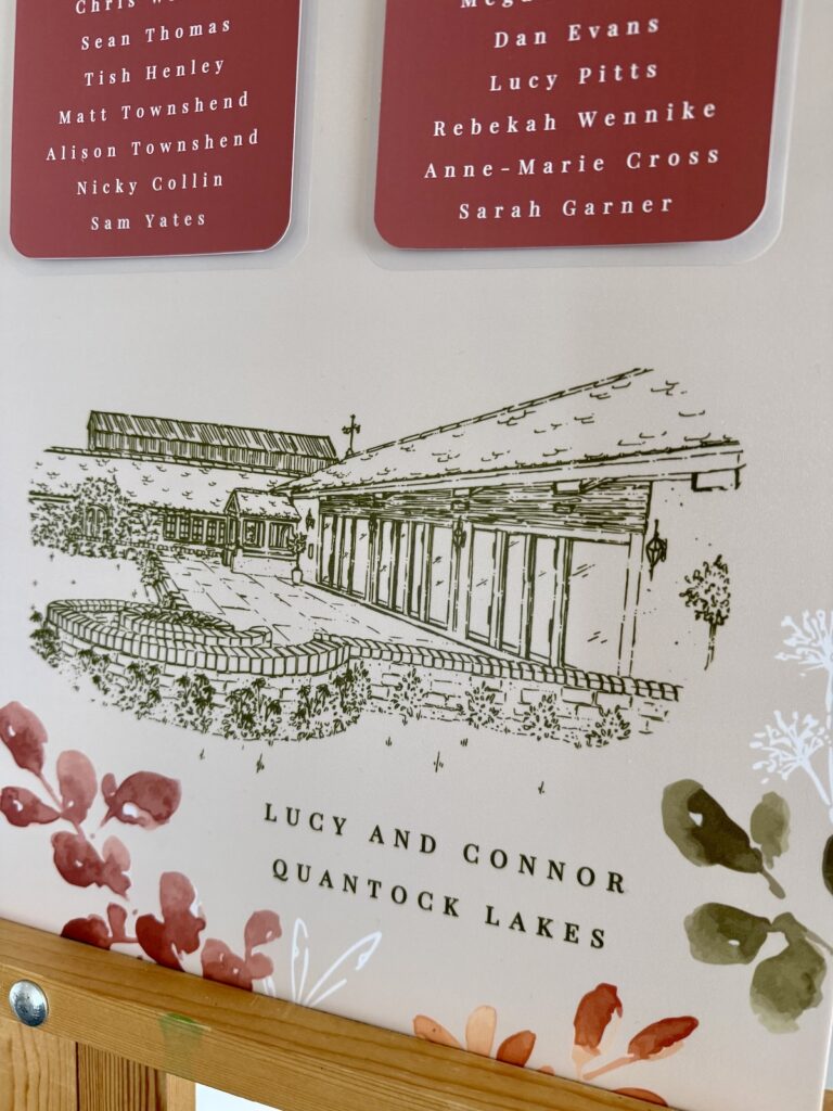 One of the lovely touches that made Lucy and Connor’s day especially memorable was the presence of live artist Clare Wilcocks, who was painting the ceremony scene as it unfolded. Her work added a wonderful creative energy to the day — guests were fascinated watching the canvas evolve in real time.
